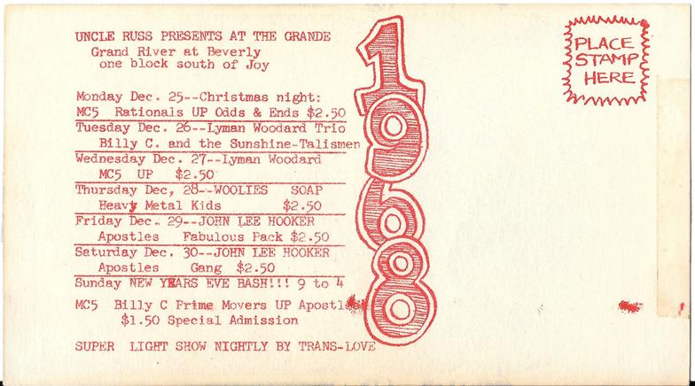The run of shows started on Christmas night, December 25, 1967, with MC5, Rationals, UP, and Odds & Ends.