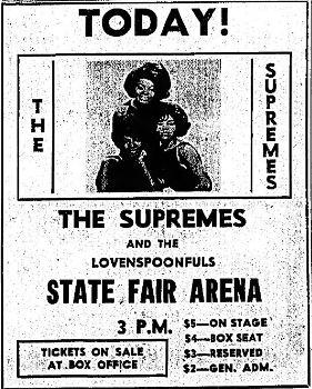 An ad for the Supremes with the Lovenspoonfuls (sic) for an afternoon show at the Oklahoma State Fair Arena in Oklahoma City on November 14, 1965.