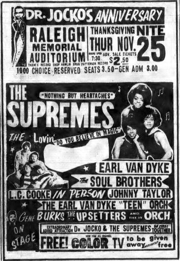 An ad for The Supremes appearance in Raleigh, North Carolina on November 25, 1965 with the Lovin’ Spoonful as opening act.