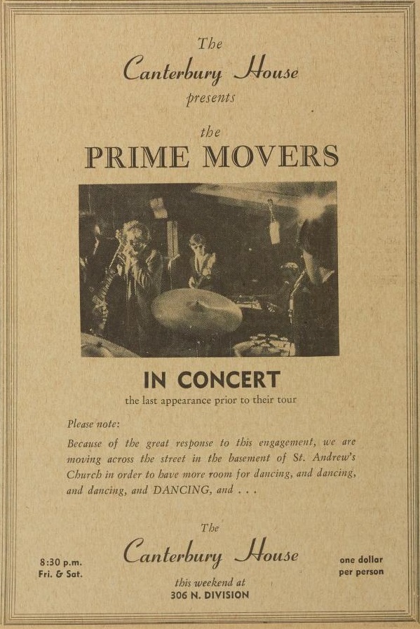 This ad for the Prime Movers by Michael Erlewine appeared in the March 25, 1966 edition of the Michigan Daily newspaper in Ann Arbor, a final performance before an Eastern tour.