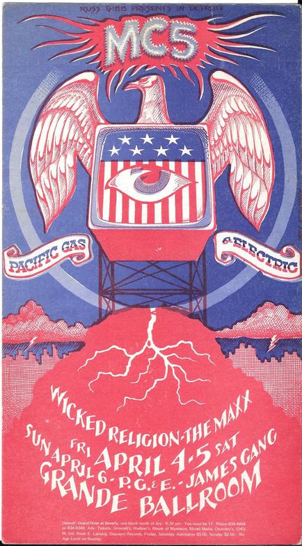 You can see that they were aware when they made the poster that the MC5 were not welcome in Grand Rapids, as indeed, city leaders had convinced the owners of the venue to take them off the bill.