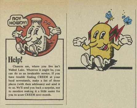 An ad in the April 1973 issue of CREEM magazine, soliciting leads on newsstands, along with a mutant version of Boy Howdy for the “Rewire Yourself” electronics feature.